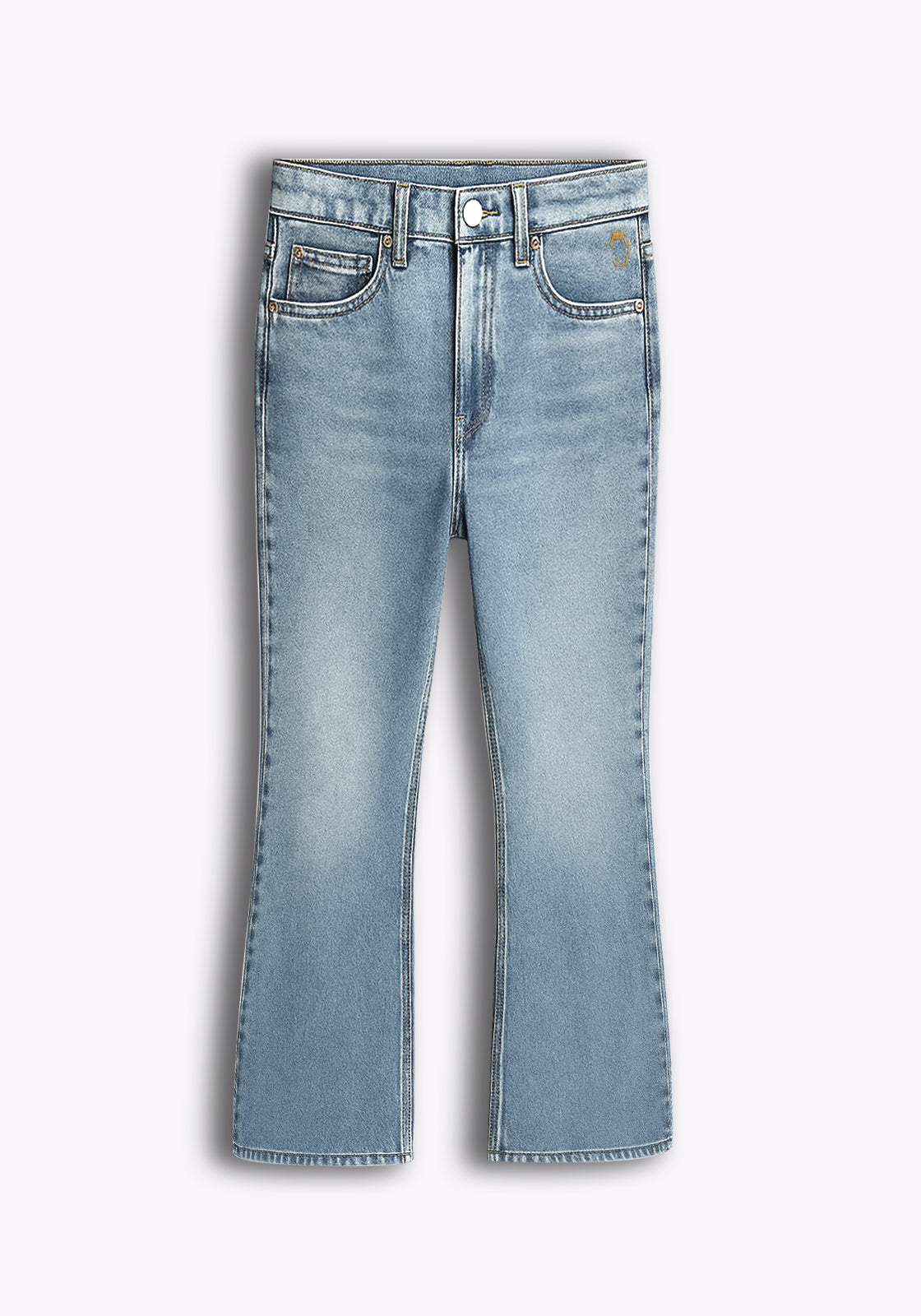 Slim through the thigh with a subtle flare at the leg, these high rise bootcut jeans give you shape without overdoing it. The light wash adds an effortless, worn-in look, making them easy to style day after day. A timeless cut, built for now.