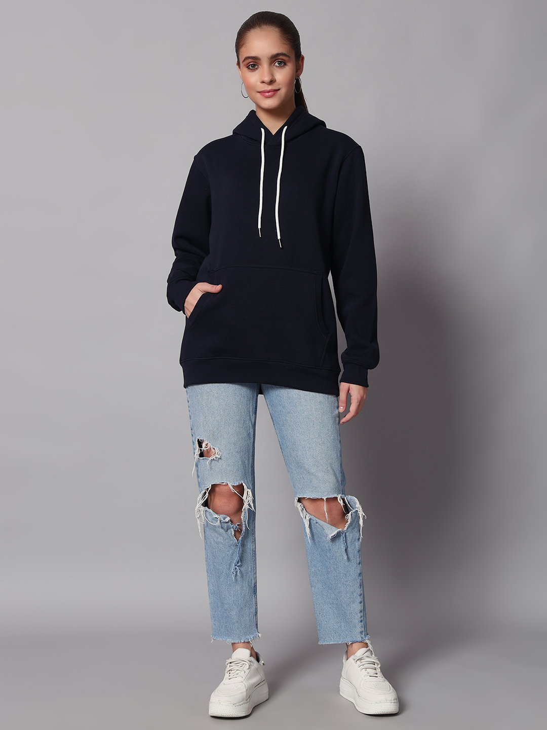 Cozy up in style with Zu-b’s Dark Navy Blue Women’s Hoodie — a perfect blend of comfort, confidence, and modern fashion.