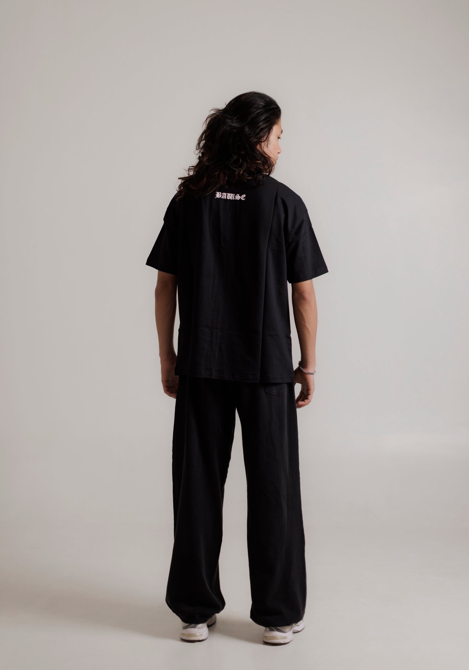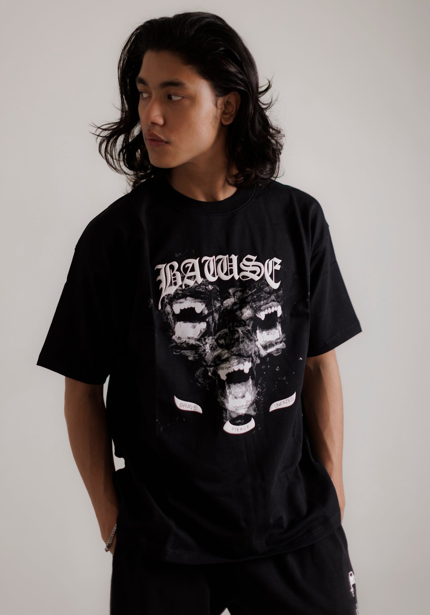 This Jet black T-shirt features our signature graphic on chest designed in house with a ribbed crewneck collar inspiring you to be brave, fierce and unfazed, the graphic features three dobermann illustrations with BAWSE. logo incorporated. 240 GSM french terry cotton. Slightly oversized fit. Made in India. Ships within 24 hours. Unisex Gaurav is 6 feet and wears XL PAN India Delivery in 2-4 days. SIZE ” IN INCH ” S M L XL XXL LENGTH 26 27 28 29 30.5 CHEST 42 44 46 49 52 SHOULDER 20.5 21 22 22.5 23