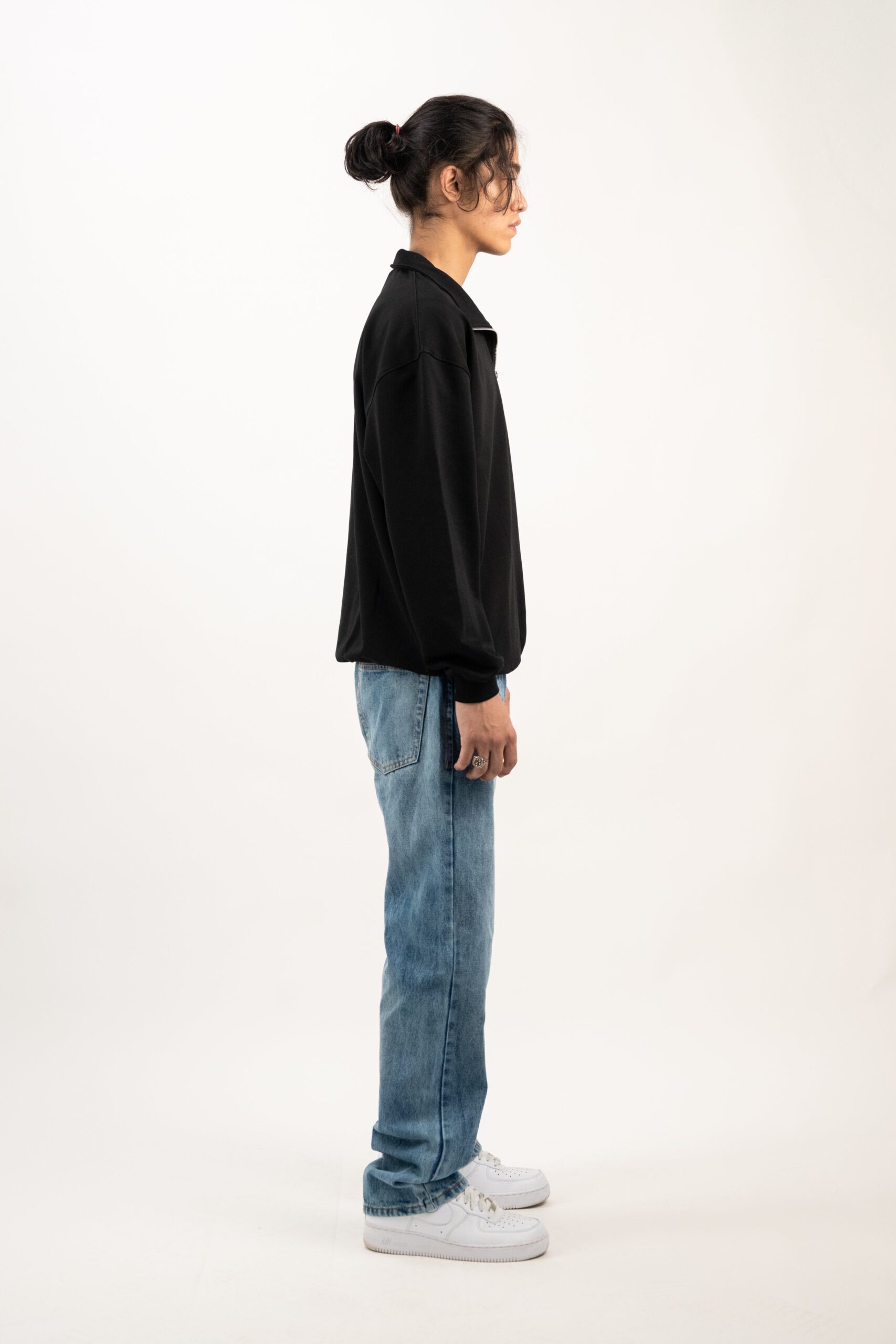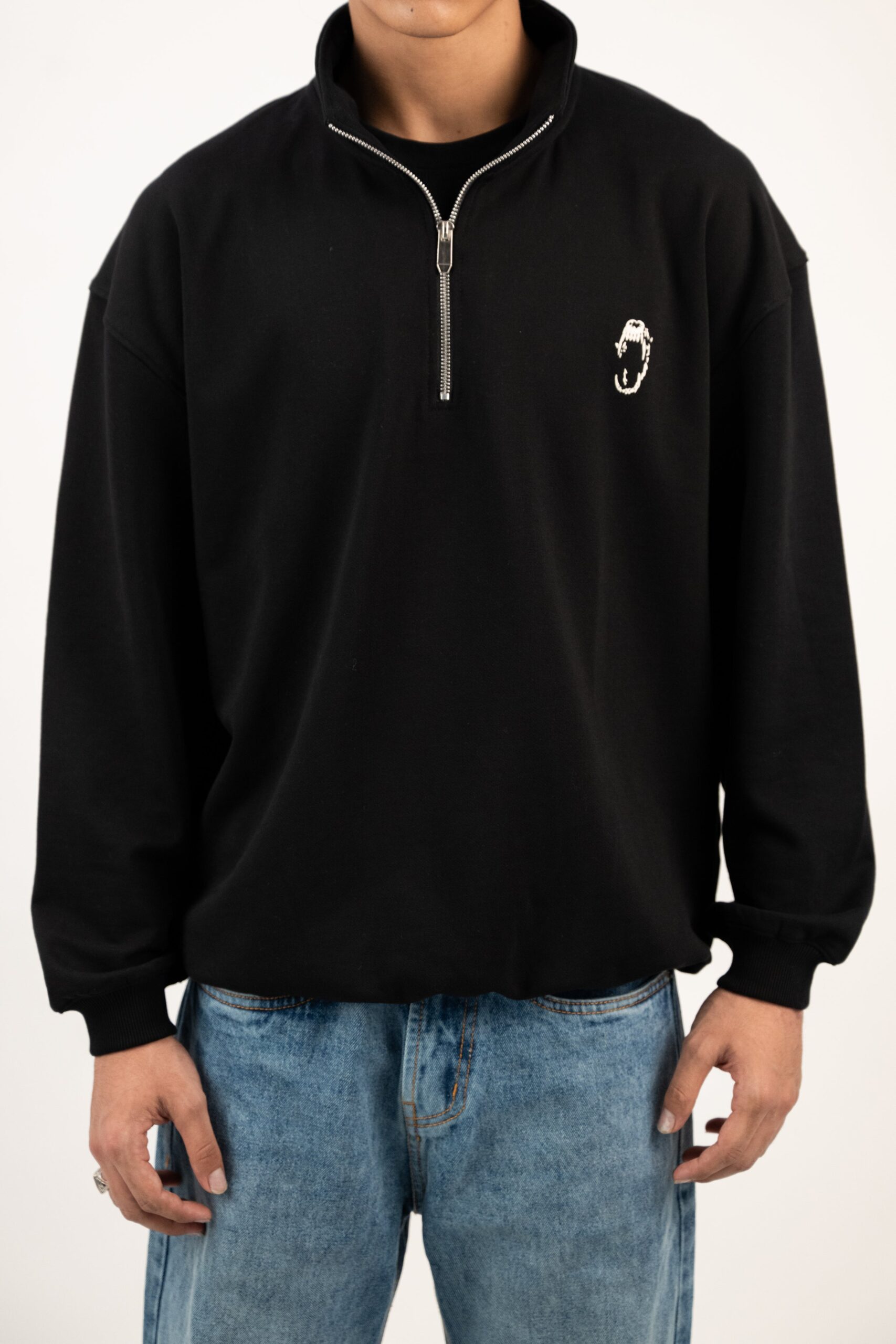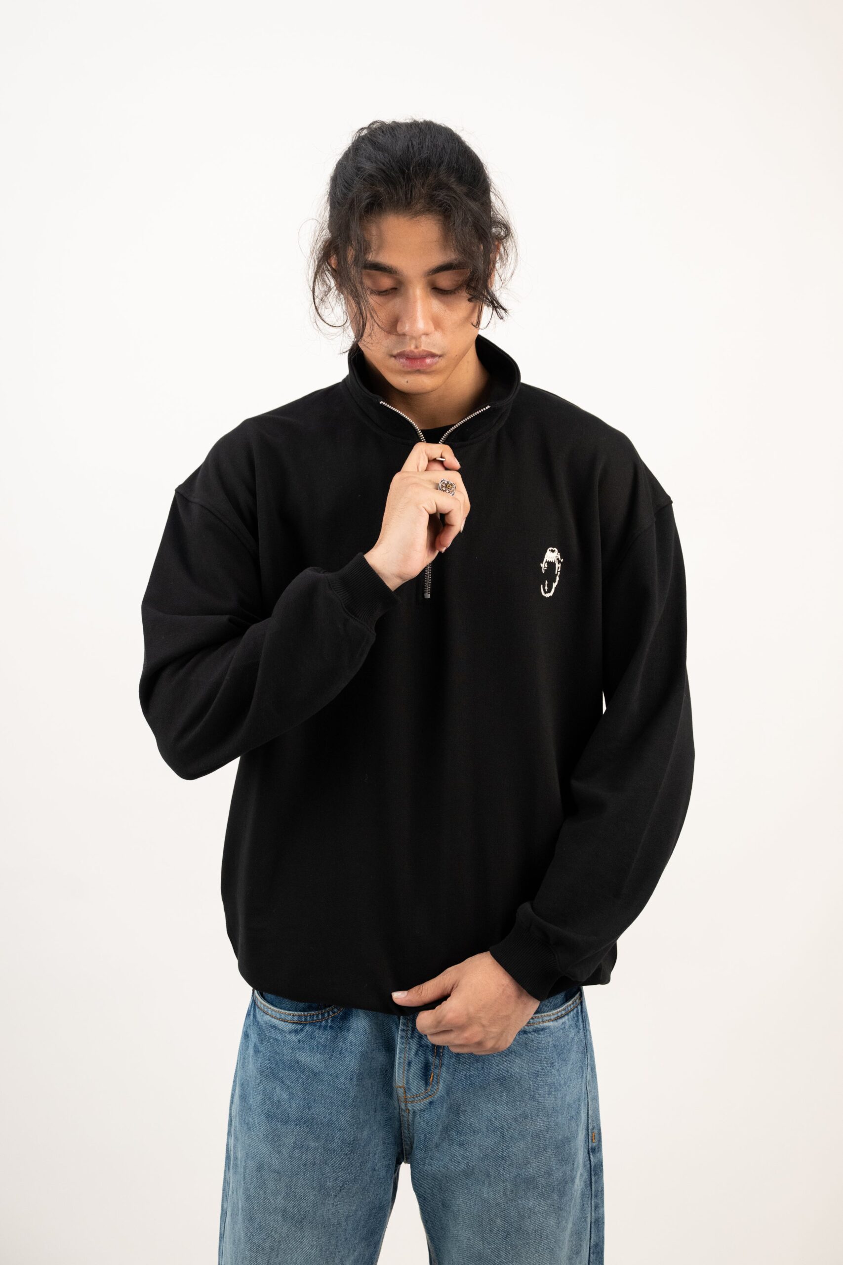 Cut from triple thread french terry, this piece brings a clean, structured silhouette with a slightly oversized fit. The metal quarter zip adds a sleek edge which is easy to layer but hard to ignore. Finished with our minimal fangs logo at the front, it’s your refined switch-up from the usual crewnecks and hoodies. 70% Cotton, 30% Polyester. Slightly oversized fit French terry. 330 GSM. Ships within 24 hours. Made in India. PAN-India delivery in 2-4 days. Gaurav is 6 feet and wears large. SIZE ” IN INCH ” S M L XL LENGTH 27 28 29 30 CHEST 44 46 48 51 SHOULDER 20 21 22 23